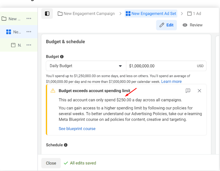 ➤ The Business Manager is unverified having a limit of $250.